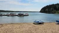 Rare opportunity to own a lakeside income property on 1.37 acres at Pine Lake, just 25 mins from Red Deer. This turnkey resort-style package includes a private 25-slip marina with boat launches, 20 leased RV lots, and a 2,600 sq ft walk-out home with two covered decks overlooking the lake. The upper level offers 2 bedrooms plus den, master suite, kitchen, and fenced yard with hot tub. A fully developed side suite provides rental income, while the partially finished walk-out level offers potential for another full suite. The attached garage and separate workshop (with bathroom and laundry for RV guests) add convenience and functionality. All RV lots are leased under low-maintenance agreements providing steady, hands-off income. Private sandy beach, next to Whispering Pines Golf Course—live on the lake, earn income year-round, and enjoy resort living at its best. - Trades Welcome.